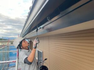 本日の作業は引き続き破風、樋の塗装になります。