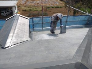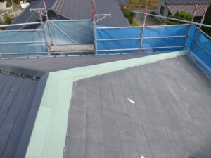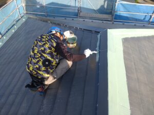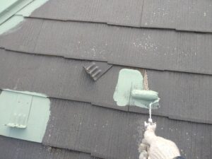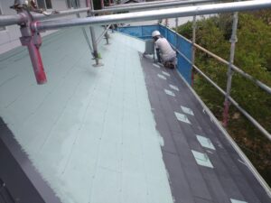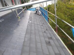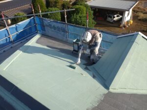 本日の作業は屋根の下塗りからです。
