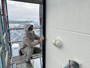 本日の作業は外壁の上塗りの続きです。